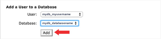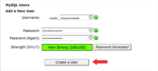 Next, you need to create a user for your database. On the same page, scroll down to MySQL Users and create a new user: