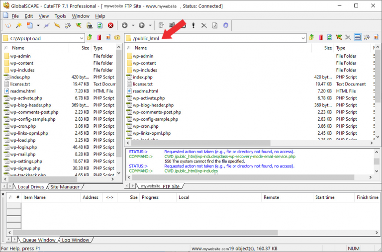 Next, unzip the file contents to a folder on your computer for example, C:\WpUpload.  Then using your FTP client software connect to your hosting server and upload the WordPress files from your computer to the public_html (or similar) folder on your website server . If you are not sure how to log into FTP, ask your host for your FTP account information.