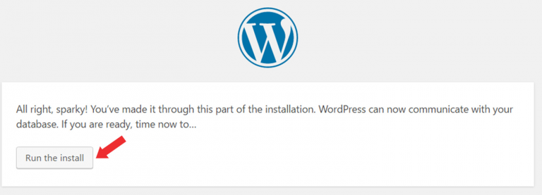 Click on Run the Install button to continue. WordPress will now create tables in your database and then send you to the next step of the installation.