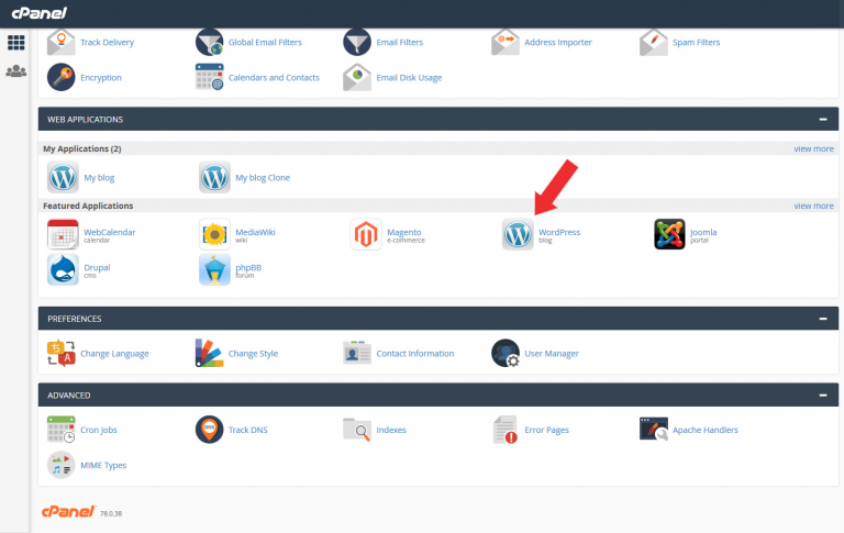 cPanel is a popular software used by many web hosting companies. It provides website owners with a simple web-based interface to manage their hosting account. It is a one-stop access to several useful utilities including auto-installer scripts that help you install WordPress. Instead of needing to do everything manually, you just input some basic information, click a button, and WordPress is installed for you.